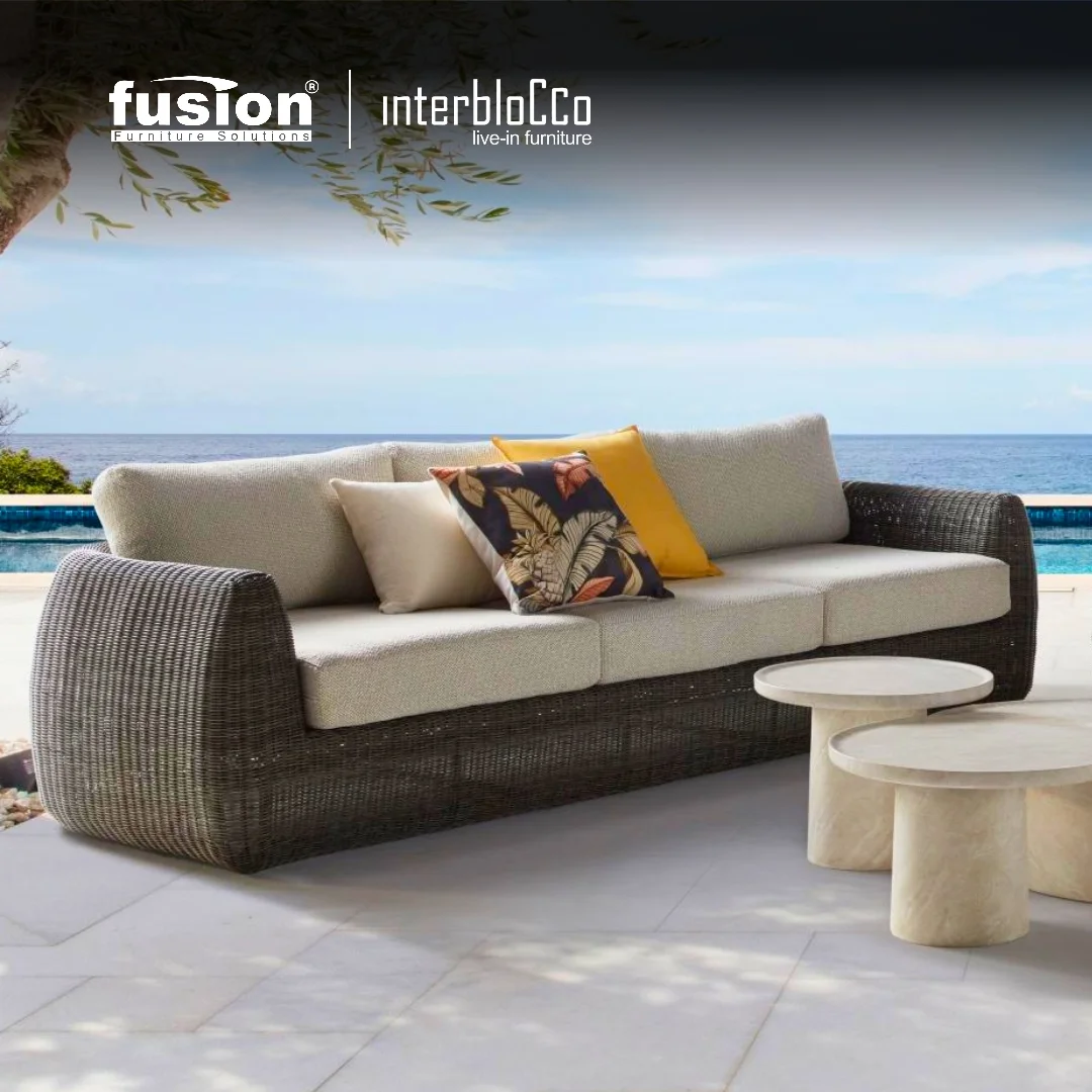 Relax in style with the Interblocco Boston, a beautifully crafted outdoor lounge sofa designed for generous comfort and contemporary sophistication. Featuring a sleek powder-coated aluminum frame and premium UV-stabilized PE wicker, this sofa is built to elevate your patio, garden, or poolside with its timeless design and durable construction.