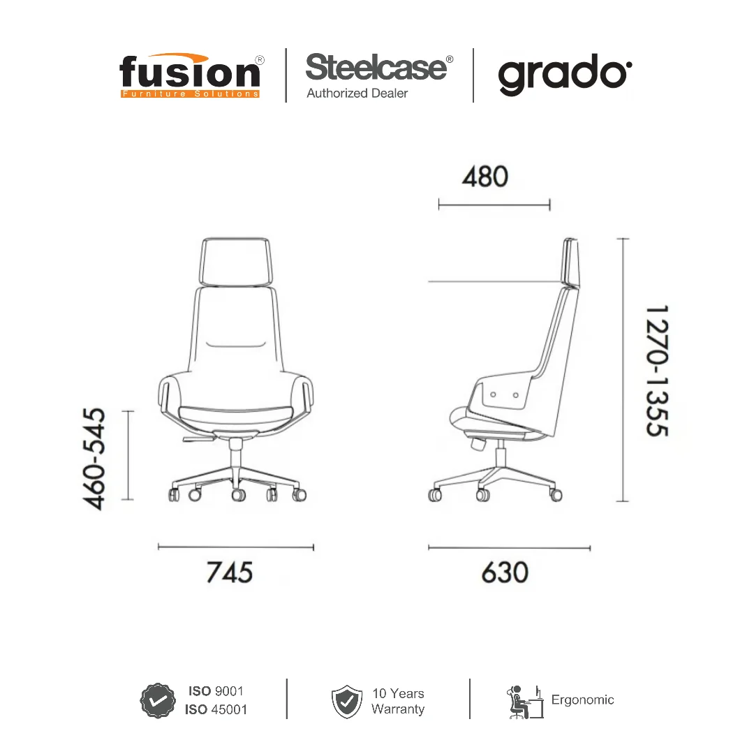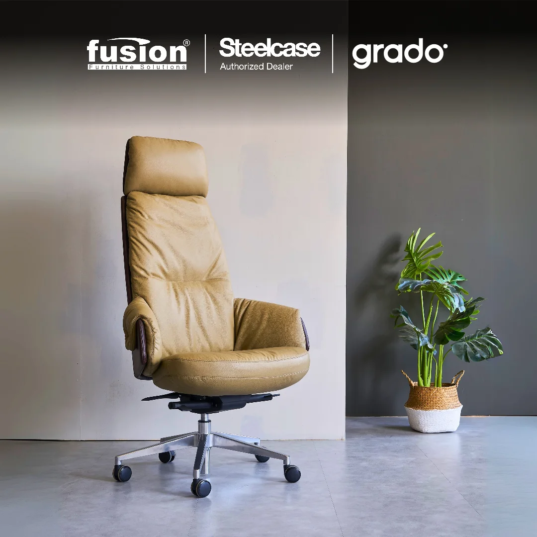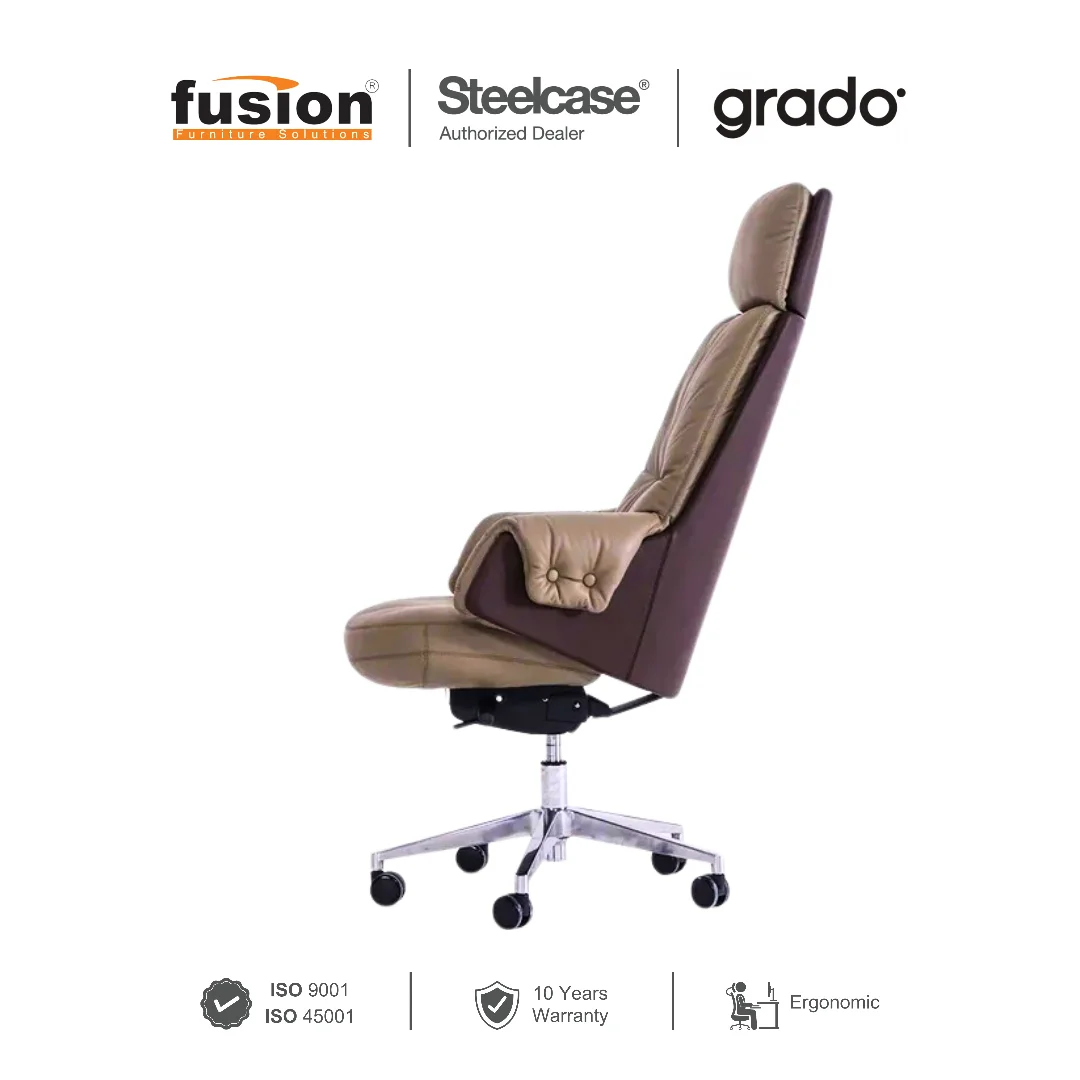 Lord is an office armchair with armrests and headrests made with plywood shell, high density sponge padding, covered in leather. The 5-star swivel base is in polished aluminum alloy with wheels.